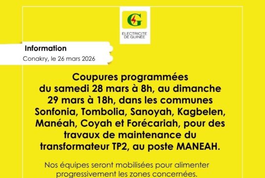 𝐂𝐨𝐦𝐦𝐮𝐧𝐢𝐪𝐮𝐞́ 𝐄𝐃𝐆 : TRAVAUX DE MAINTENANCE AU POSTE MANEAH (COYAH)